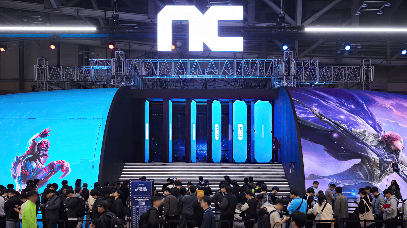 The experience begins at the outdoor booth, building anticipation along the entrance path. At the main booth's center, a massive dome LED signals the entry into a virtual world, leading into an internal cinema where the five IPs are showcased through a cinematic lens. Visitors then move naturally to the demo zone for hands-on play. The impact was immediate and measurable. At peak hours, visitors waited up to 300 minutes for the opportunity to experience the game demos—clear evidence of the booth’s strong drawing power and the market’s anticipation for NC’s new lineup.